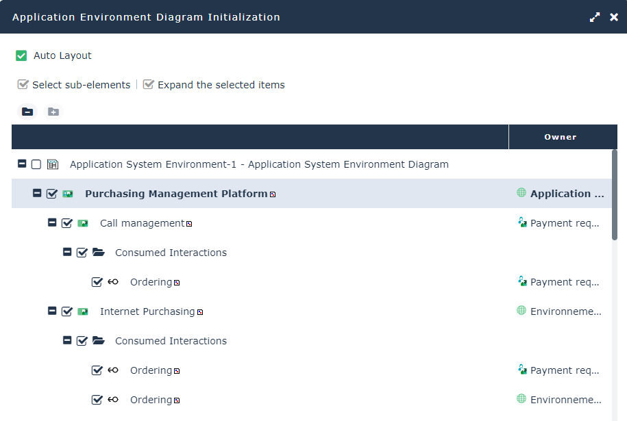 The Auto Layout button allows you to reorganize the diagram elements taking into account the exchanged flows.