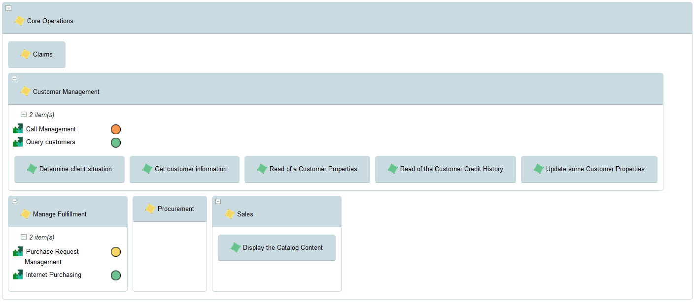 You can use this report to display the realization coverage of business capability elements by operational elements such as logical and physical applications, application systems, etc.