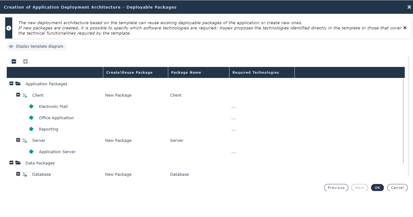 The diagram opens and Then, you can modify the content of your new application deployment architecture.