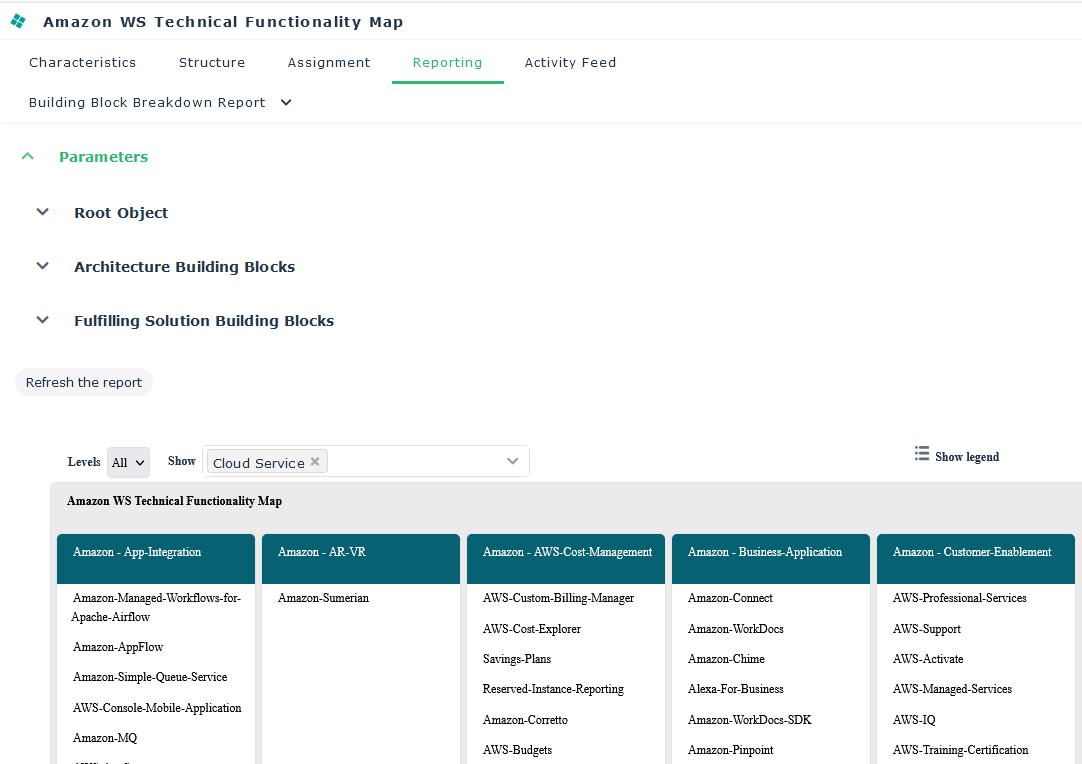 To view the functional coverage of the Cloud services connected to the technology capability map: