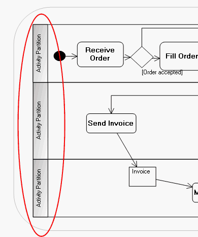 An activity diagram can be divided into partitions. Each partition contains nodes or actions as well as the flows between these elements.