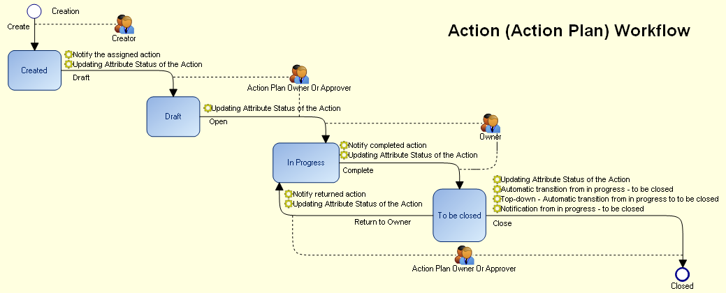 • A Bottom-Up workflow, which corresponds to the case where an action plan is created by any user. The new action plan must be validated by an approver before being implemented.