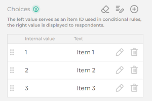 • have integers as possible answers internal values