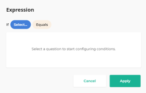 A condition defines the logics that determines whether an action should be triggered or not. This condition is assessed each time a respondent answers a question.