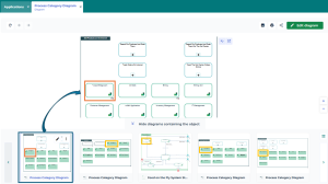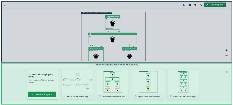 Click Show diagrams describing/containing the object at the bottom of the edit zone to view the other diagrams tiles.