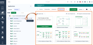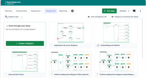 If more than 5 diagrams are available, the additional tiles are hidden. The diagram in view or edit mode also features in the tile list.