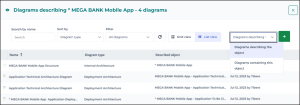 When you access an object list of diagrams, you can modify the diagrams display order criteria in order to ease your search.