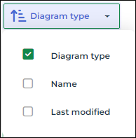 Example: select Name to sort the diagrams by alphabetical order (A-Z), or by inverted alphabetical order (Z-A).