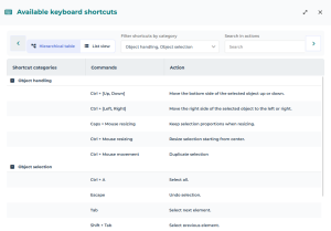 5. To search for a shortcut by term in its description, in the Search in actions field, enter a term.