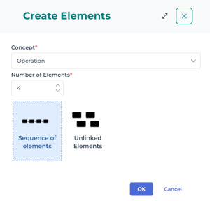 In tabular entry mode, sequences are created automatically when a new element is inserted: the sequences can be viewed or modified using the columns that characterize the Previous item or Next item.