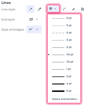 5. In the Lines section, use the drop-down lists to modify the line: