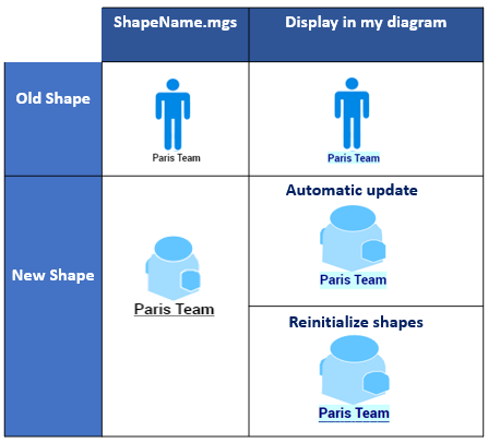 If the shape (.mgs file) of an object type has been modified, when opening the diagram that uses this shape: