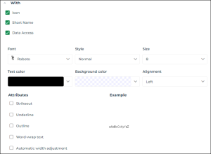 • Attributes: Strikeout, Underline, Outline, Word-wrap text, Automatic width adjustment