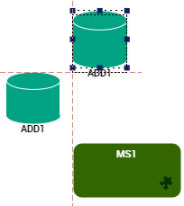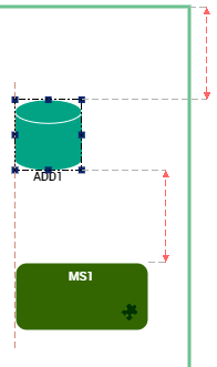 The smart guides indicate the spacings and alignments between elements in the diagram.