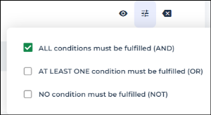 E.g.: Select "NO condition must be fulfilled" to search all objects that do not meet the conditions you defined.