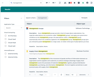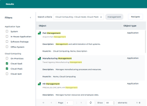 E.g.: the filters returned with a full text search on all the object types including “management”.