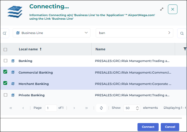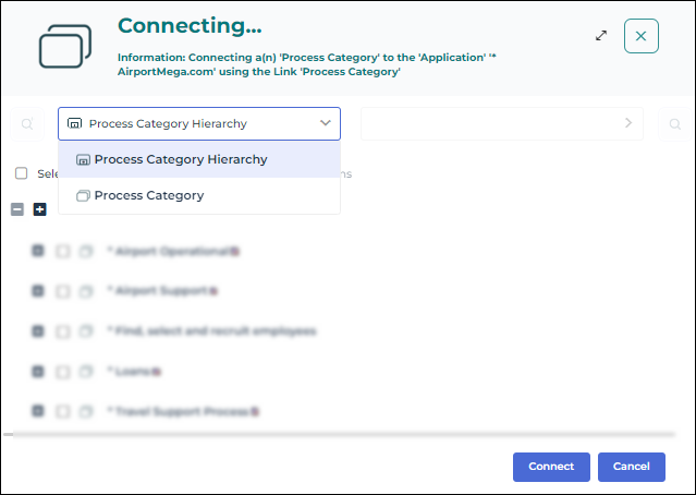 Example: you want to define the functional scope of an application and connect processes to it. You can, for example, select the processes from a list or a tree.