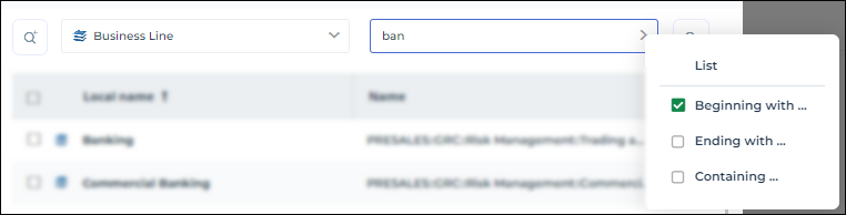 3. (Optional) In the first field, use the drop-down menu to modify the object type to which your search relates.