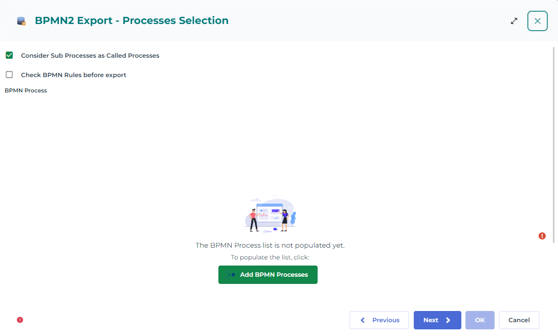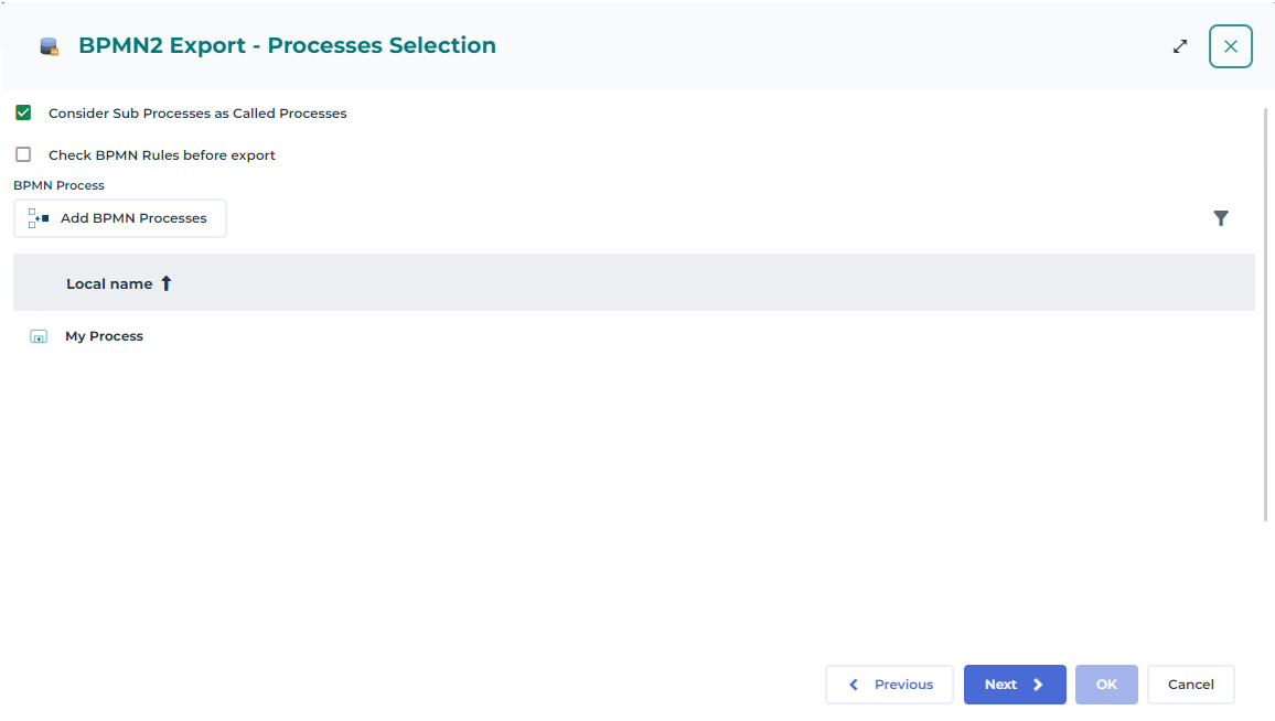 Click Add BPMN Processes to specify the list of processes you want to export.