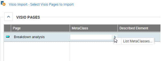 2. For each Visio master, indicate the corresponding HOPEX MetaClass.