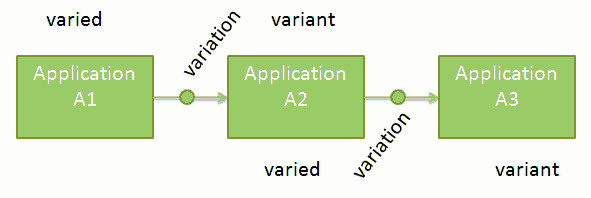 A variation is a MetaClass that connects concepts to their variants. The link between the existing object and the new object allows the new object to inherit elements of the object from which it is derived.