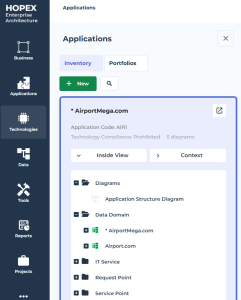 Example of an unfolded tree in the card of an application (HOPEX Solution Architecture desktop).