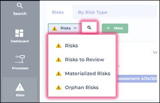 E.g.: filters available in a card list of Risks in the HOPEX GRC desktop.