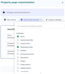 • In the list, select the attributes. Attributes are added to the section as you select it.
