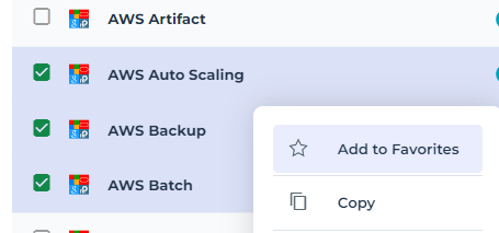 3. Right-click an object of the list and select Add to Favorites.