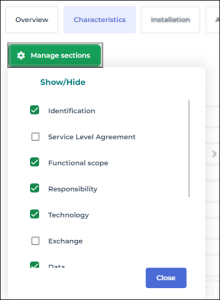 To facilitate the reading, you can display or hide certain sections of an object. The modification applies to all the objects of the same type.