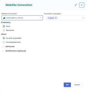 • Generation Languages: select the languages that match those used in your website configuration.