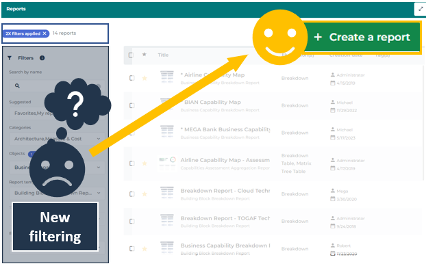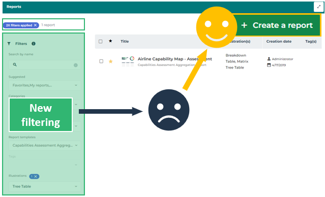 The list of reports matching the filtering is automatically updated.