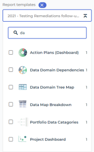 E.g.: in the search field of the Report templates filter, enter: “da”. The list narrows down to the report templates whose name includes “da”.