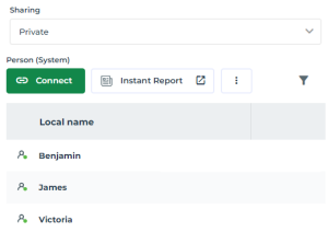 E.g.: the persons Benjamin, James, and Victoria have access to the Report DataSet in My Report DataSets.
