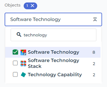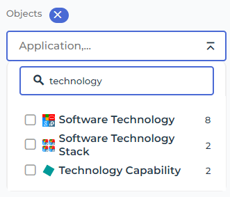 E.g.: in the search field of the Objects filter, enter: “technology”.