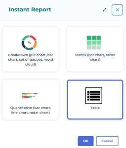 5. Select the required instant report type.