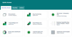 • in Actions, find shortcuts facilitating your use and navigation in Hopex.