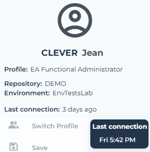 • Last connection (time elapsed since last connection, its tooltip shows the exact date/time)