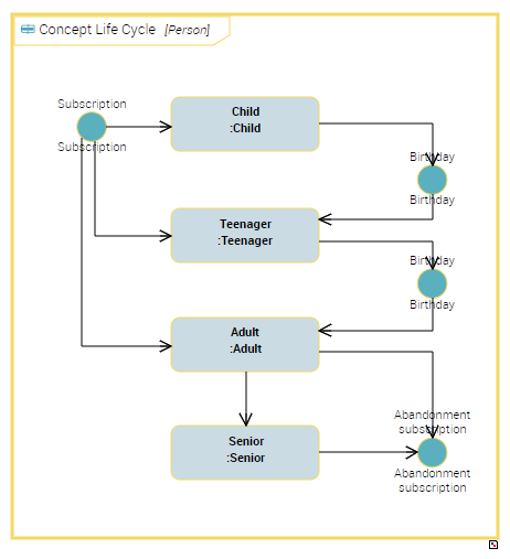 • Concept Life Cycle Events, which are connected to event concepts of the"Person" concept