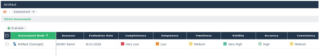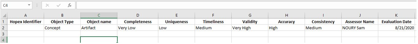 This Excel template is mapped to the data quality assessment template implemented in the direct assessment tool of HOPEX Data Architecture.