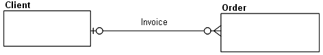 In the above example, a client can be invoiced for zero, one or many orders, and an order should be invoiced to a client, but it is not mandatory (delivery problems, etc.).