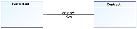 In the diagram below, the role that a “Consultant” plays in a “Contract” depends on the consultant and on the contract, and therefore on the “Intervene” association.