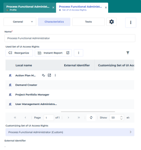The set of UI access rights you created is predefined with the same UI access rights as those defined for the profile concerned.