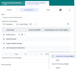 10. (If needed) Define the Set of UI access rights of the profile.