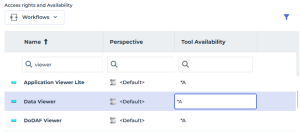 4. In the Access rights and Availability pane, select the Set of UI access rights for which you want to modify access on the tool.
