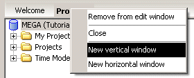 When you have created several edit windows, you can move a tab from one window to another by selecting