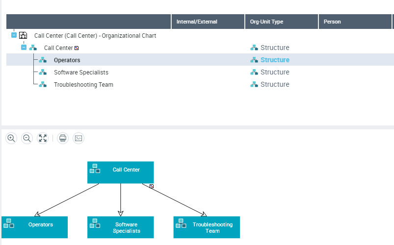 A tree entry structure is presented for an Organizational Chart, for example. A tree table is used to specify the diagram components.
