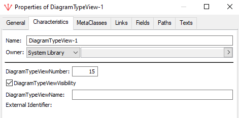 1. In the DiagramTypeObject Property pages, select the Characteristics tab.
