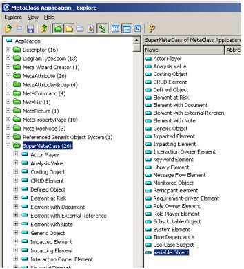The inheritance link is performed either tracing the link in a metamodel diagram or adding the Variable Object metaclass in the superMetaClass relationship of the concerned concept.