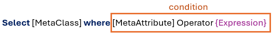 An expression in a condition can calculate an attribute value within an expression of different intrinsic attributes, with the following format: